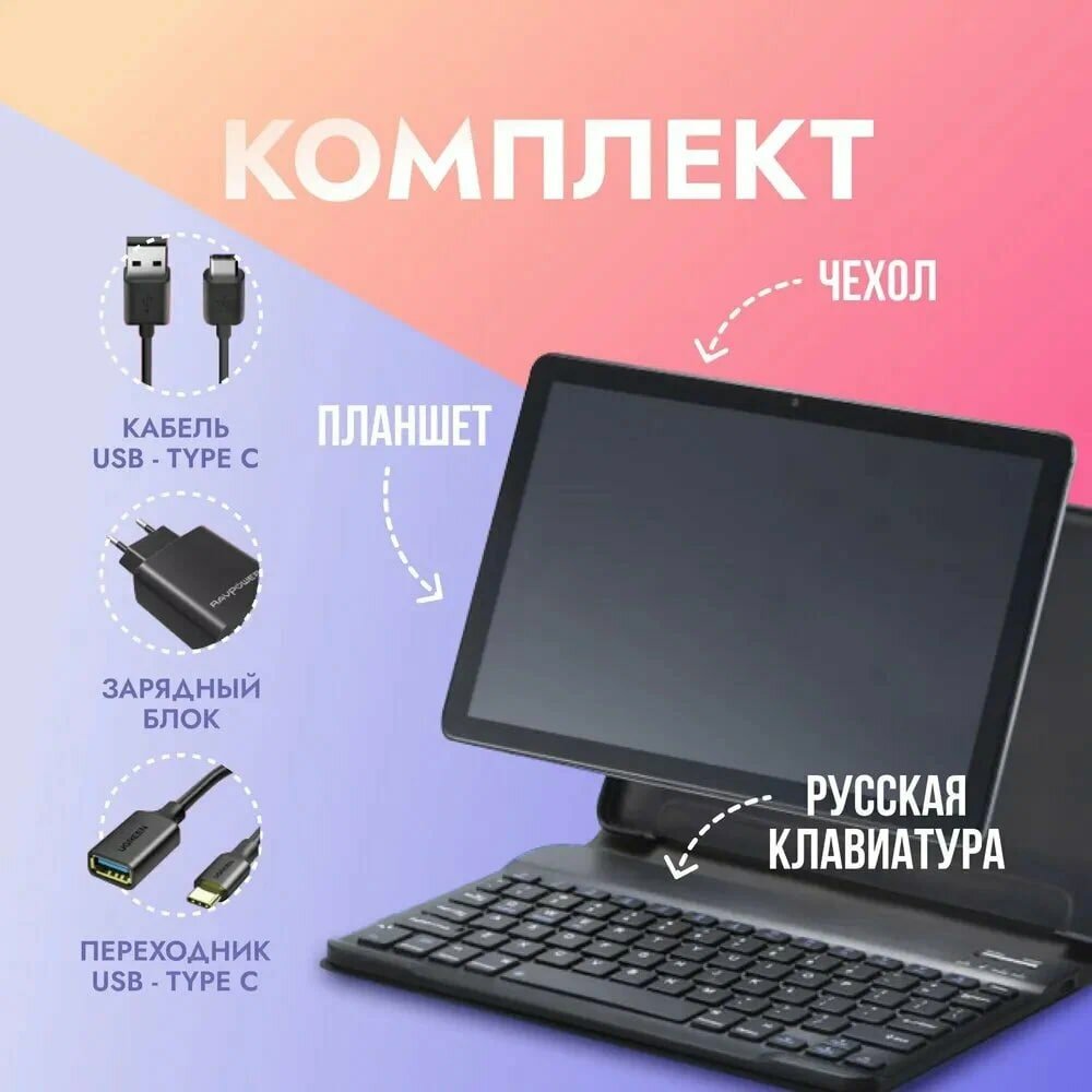 | Комплектация | Планшет, чехол, клавиатура, зарядное устройство |