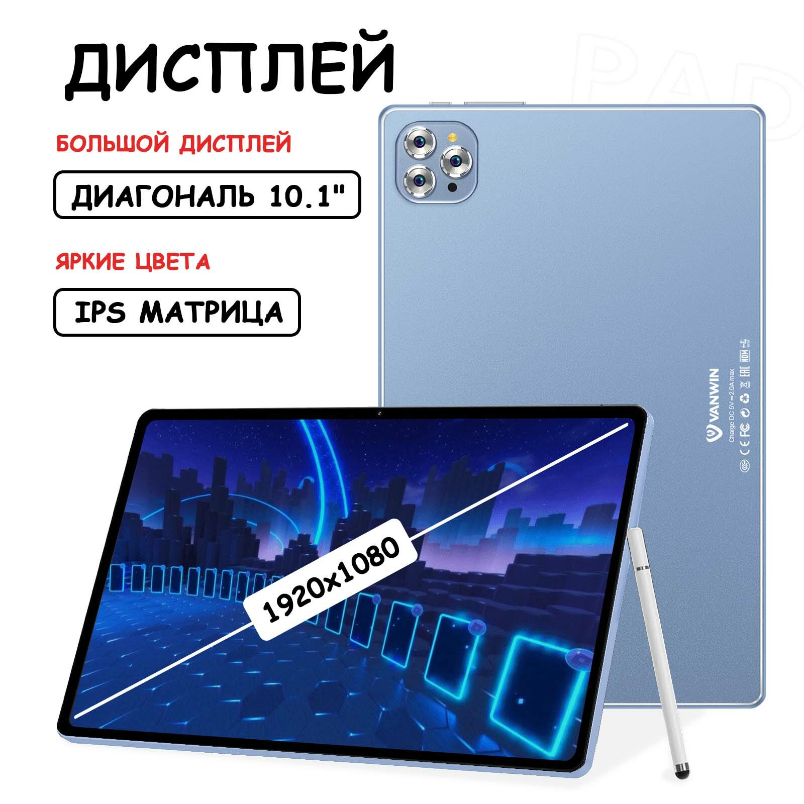 Купить планшет с сим картой 10.1 дюйма, 12 GB RAM, 512 GB ROM, Android 12, 1920x1080, планшет андроид русская клавиатура, синий