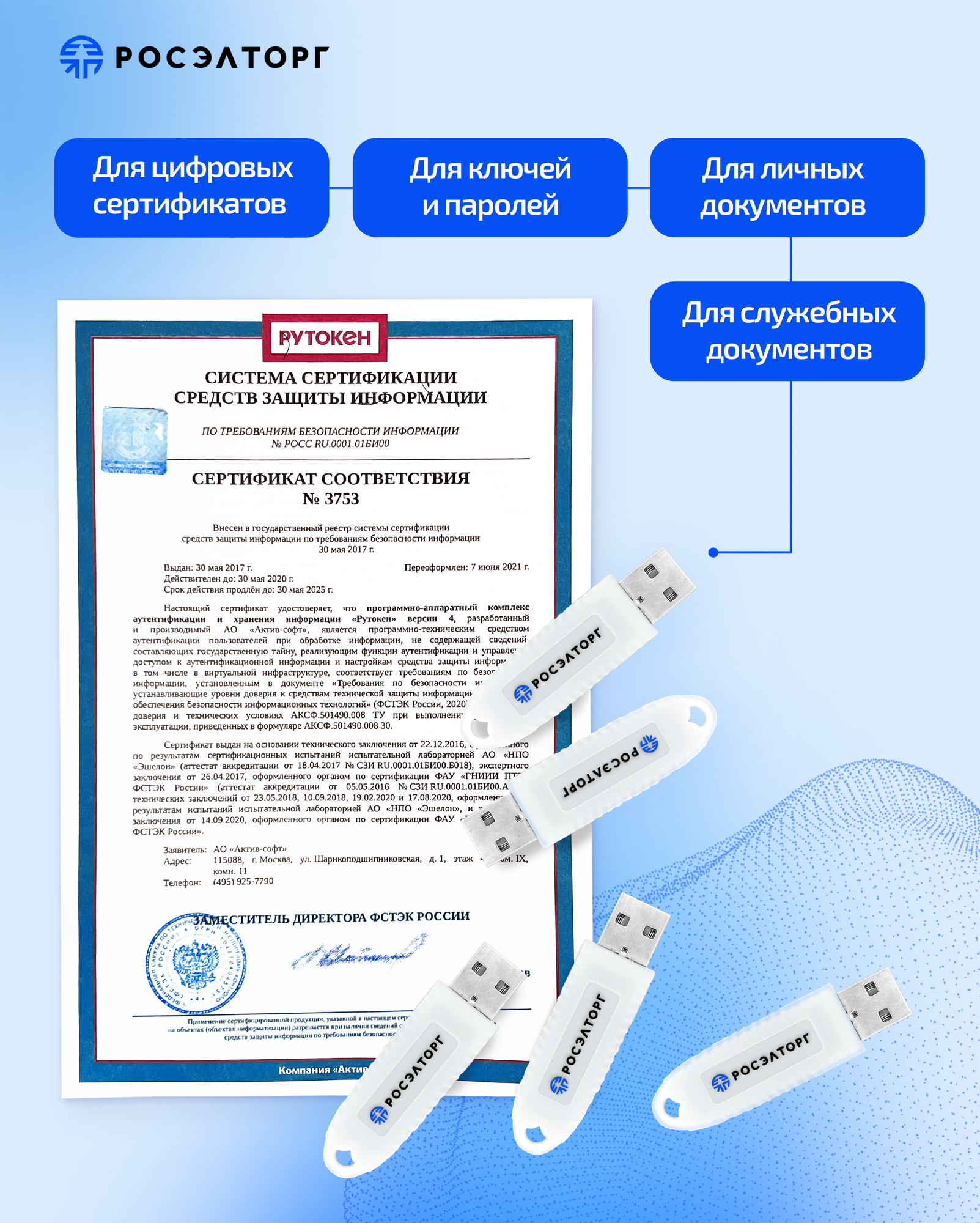 Рутокен Lite - 64КБ, сертификат ФСТЭК интересное: