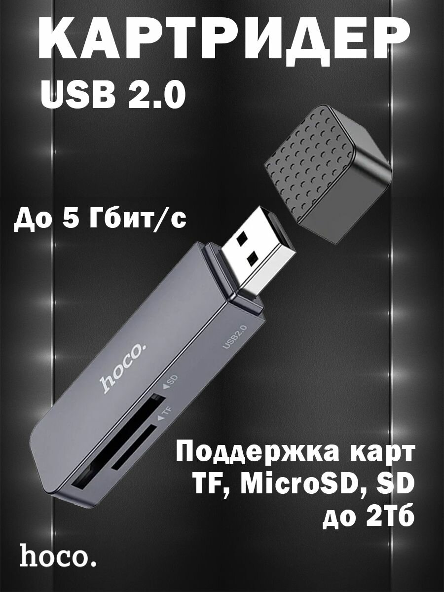 Картридер Hoco HB45 Spirit 2-в-1 USB 2.0 для SD и MicroSD / TF карт, серый интересное: