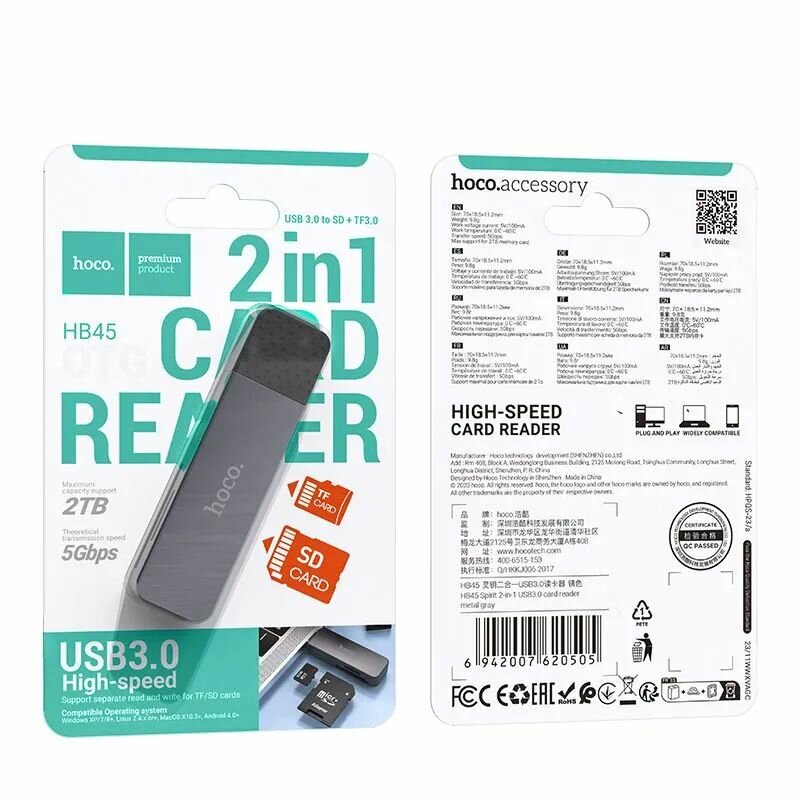 Ниже Вы можете прочитать отзывы на Устройство чтение карт памяти, USB 3.0 Картридер для SD / micro-SD card reader hoco HB45, ознакомится с подробными характеристиками, посмотреть интересные обзоры и фотографии на Устройство чтение карт памяти, USB 3.0 Картридер для SD / micro-SD card reader hoco HB45.