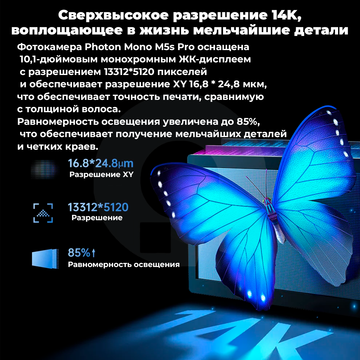 3д принтер ANYCUBIC Photon Mono M5s Pro, 200х223х127, SLS, ЖК-дисплей, 300 мм/сек скорость печати интересное: