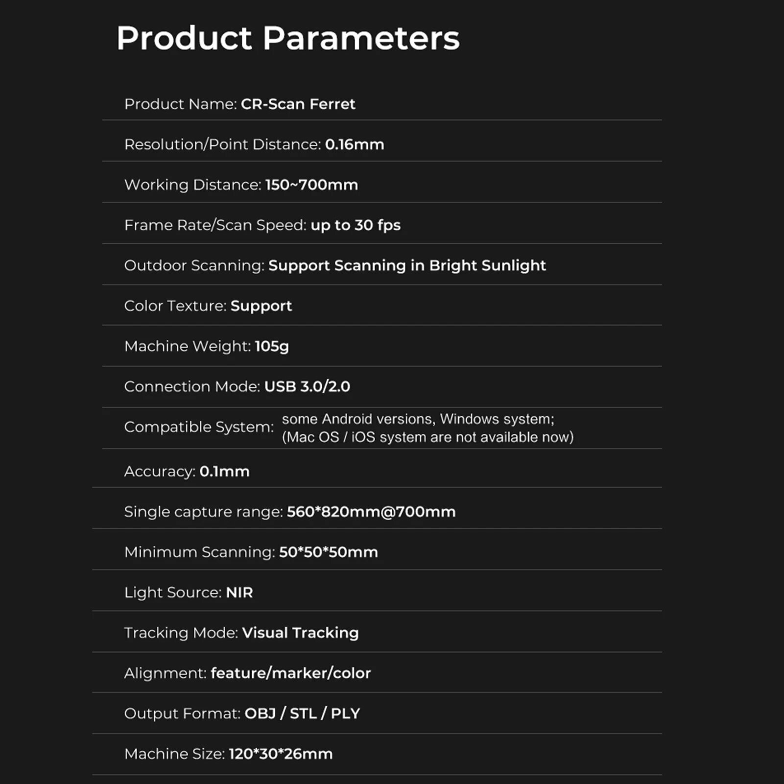 Creality CR-Scan хорьковый 3d-сканер портативный 105g 30fps скорость сканирования двойной режим цветной текстуры для 3D принтеров Поддержка питания телефона интересное: