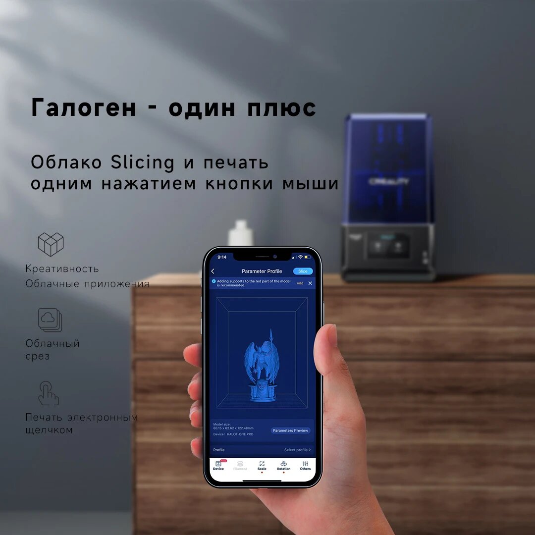 3д принтер CREALITY Halot One Plus Resin 3D, 172х102х160, SLA, ЖК-дисплей, 150 мм/сек скорость печати интересное: