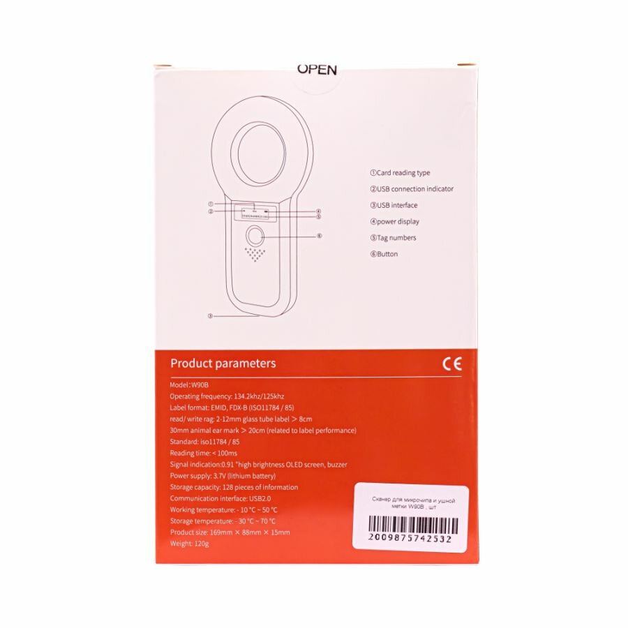 Сканер для микрочипа и ушной метки W90B, память на 128 номеров интересное: