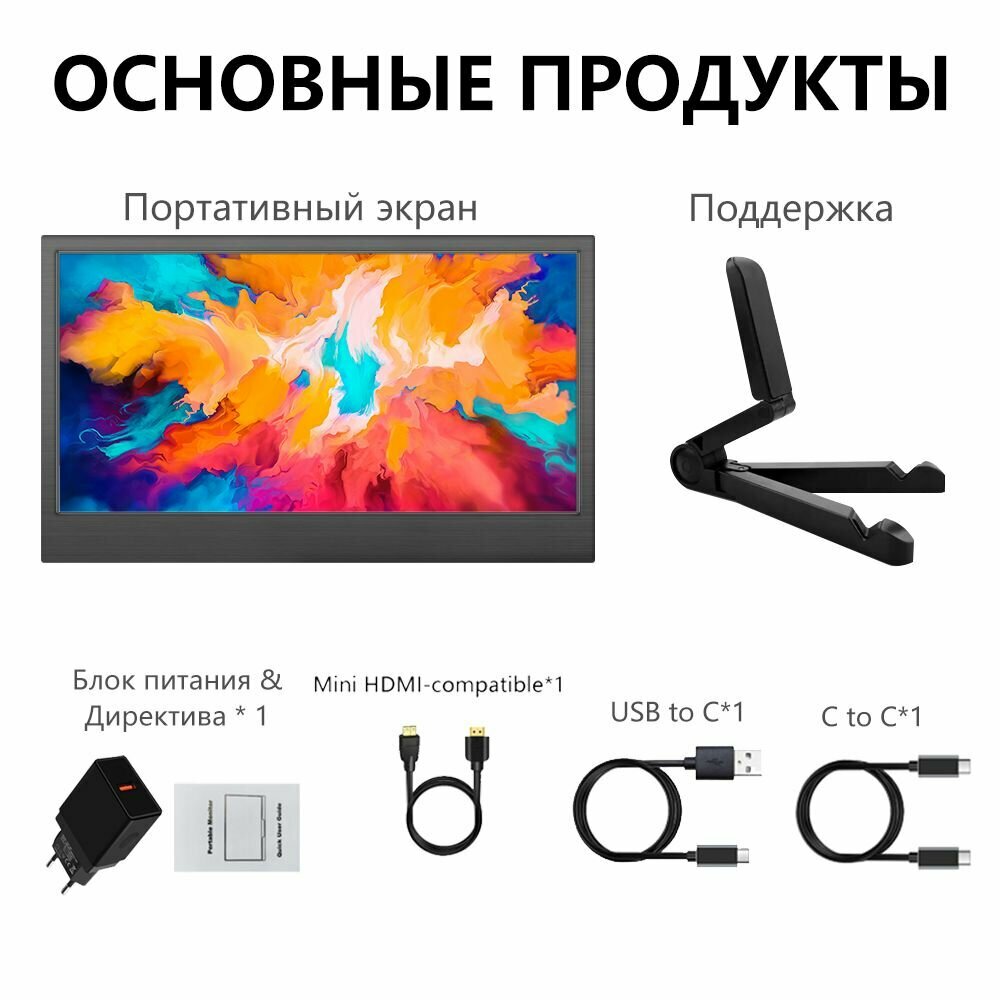 Портативный 11,6 дюймовый монитор черного цвета с разрешением 1366х768 пикселей интересное: