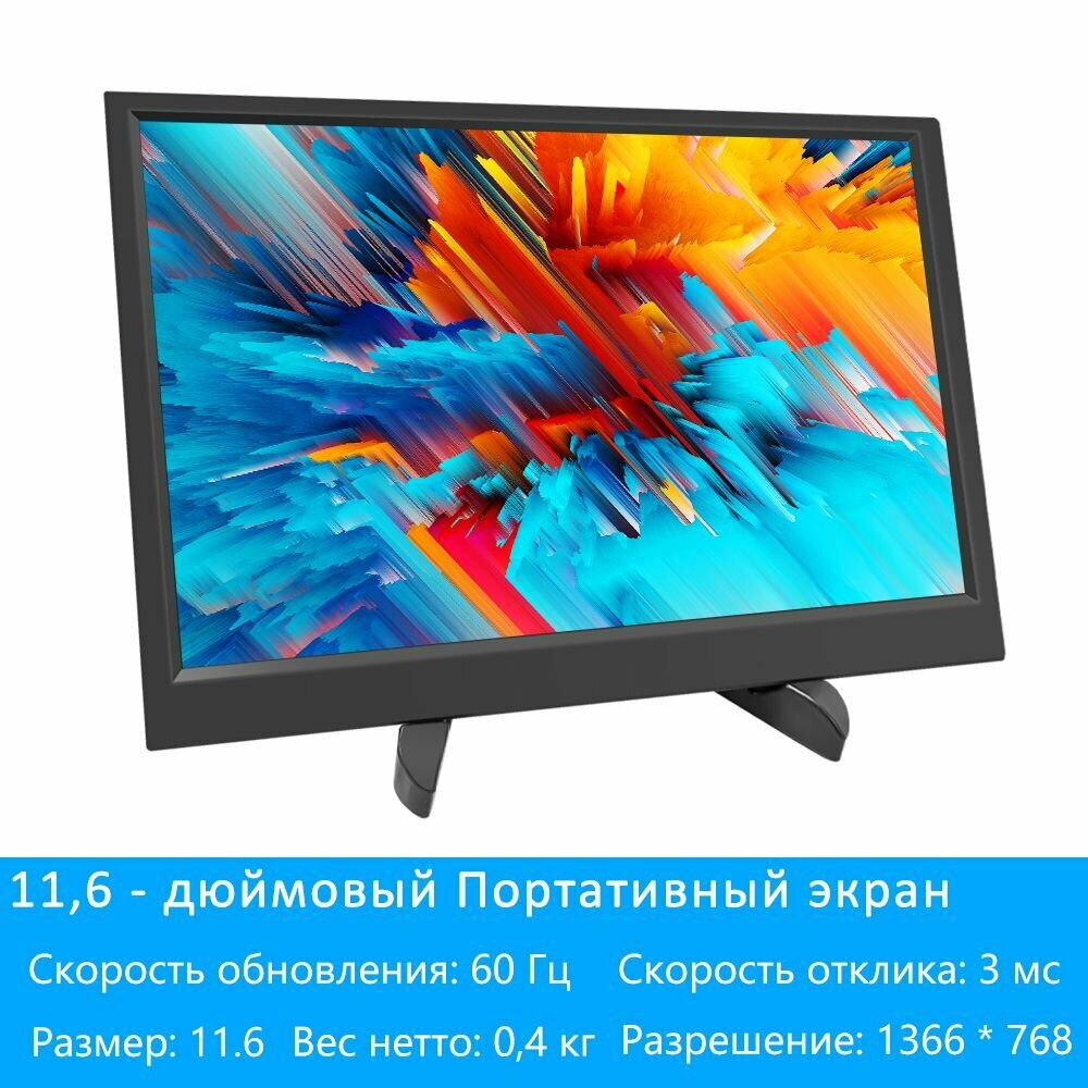 Купить Портативный 11,6 дюймовый монитор черного цвета с разрешением 1366х768 пикселей