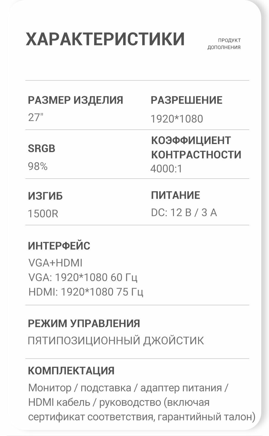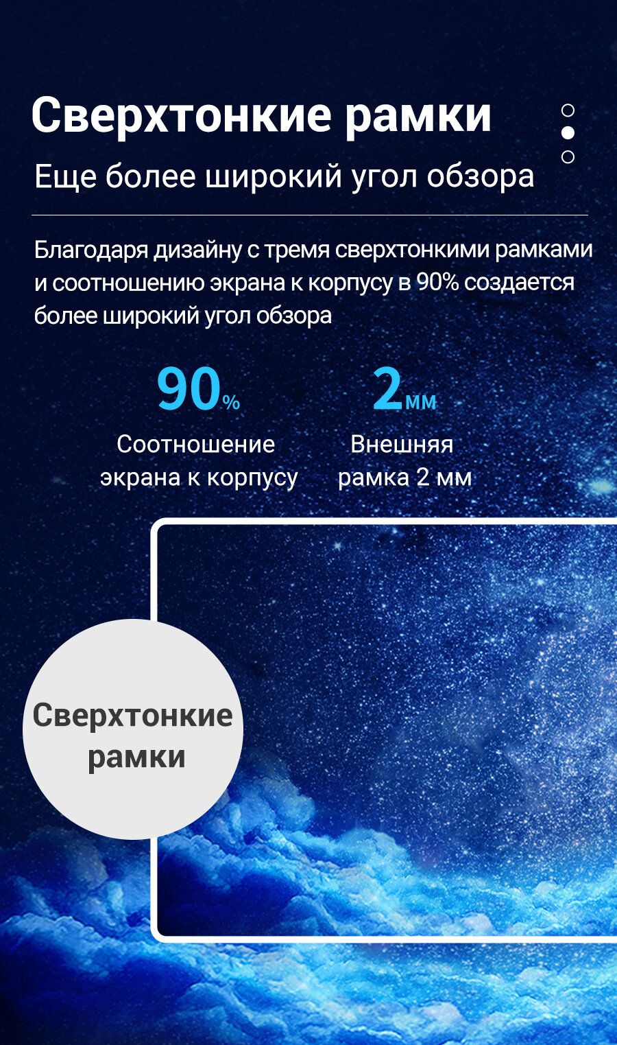 | Дополнительная информация | Тонкие рамки, высокая частота обновления, изогнутый дисплей |