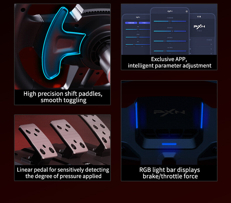 Рулевое колесо PXN Laishida V9 Gen2, для гоночных игр, 900 градусов, для PC, PS4, Switch, черное интересное: