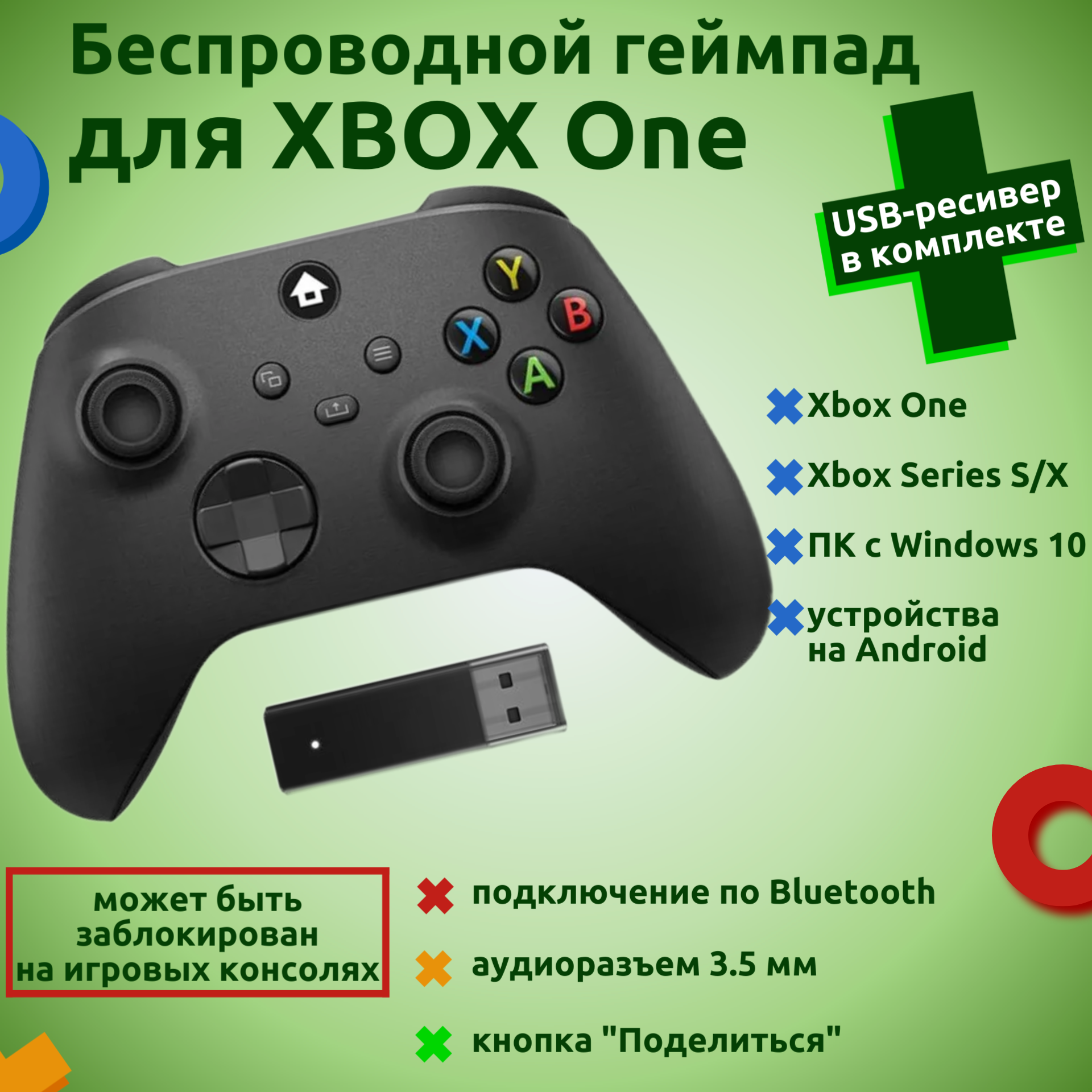 | Подробная комплектация | Беспроводной геймпад, USB-ресивер, батарейки, коробка |