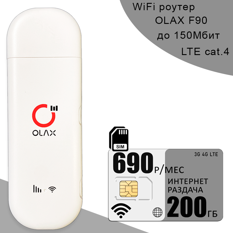 Купить Беспроводной 3G/4G/LTE модем OLAX F90 + сим карта с интернетом и раздачей, 200ГБ за 690р/мес