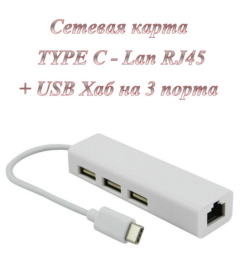 Сетевая карта / Ethernet адаптер Type C - LAN с хабом на 3 Usb 2.0 порта 100 Мбит/с интересное: