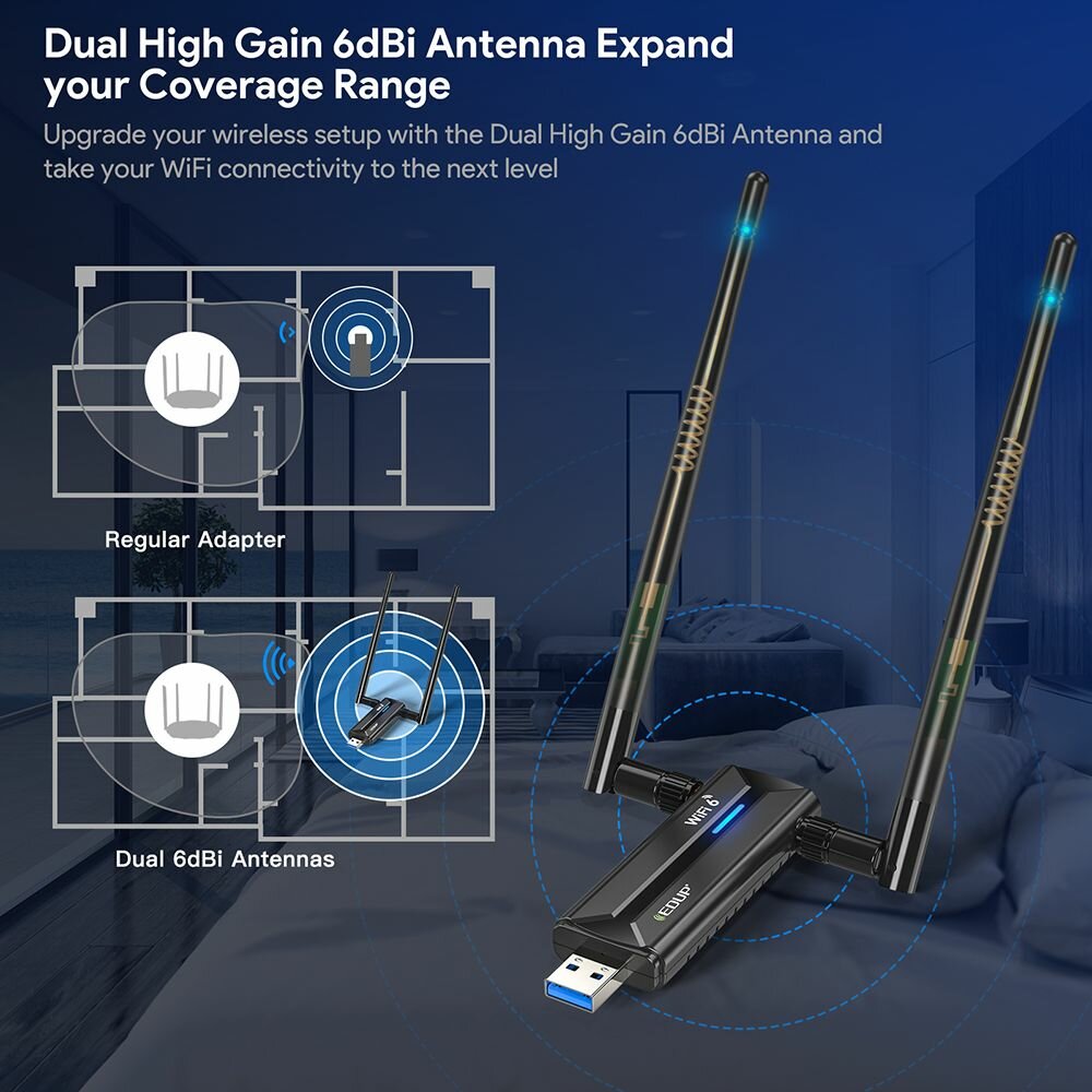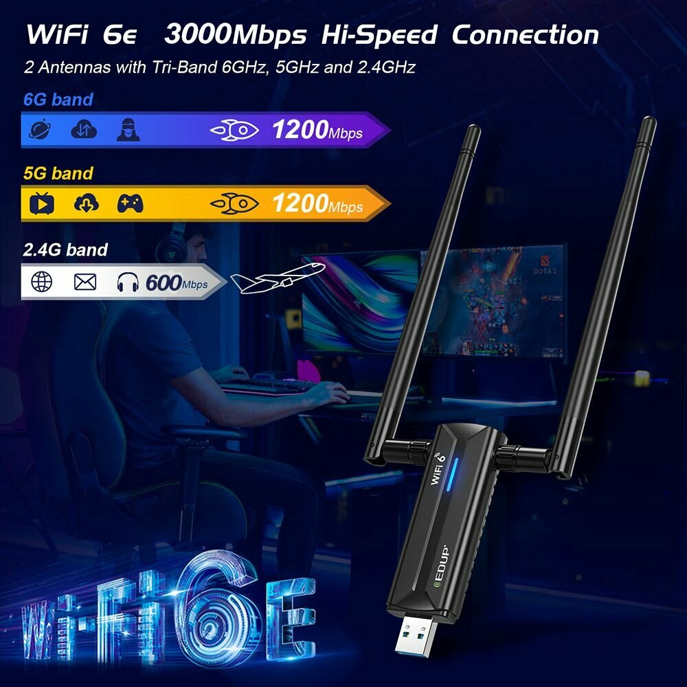 EDUP WiFi 6E USB адаптер (USB 3.0) 3000Мбит/с Dual Band 2.4G/5.0G/6G 802.11ax интересное: