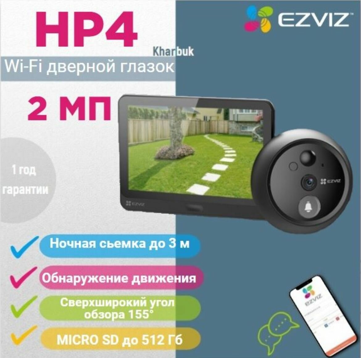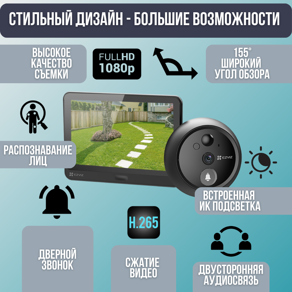 Дверной глаз Ezviz Wi-Fi CS-HP4 интересное: