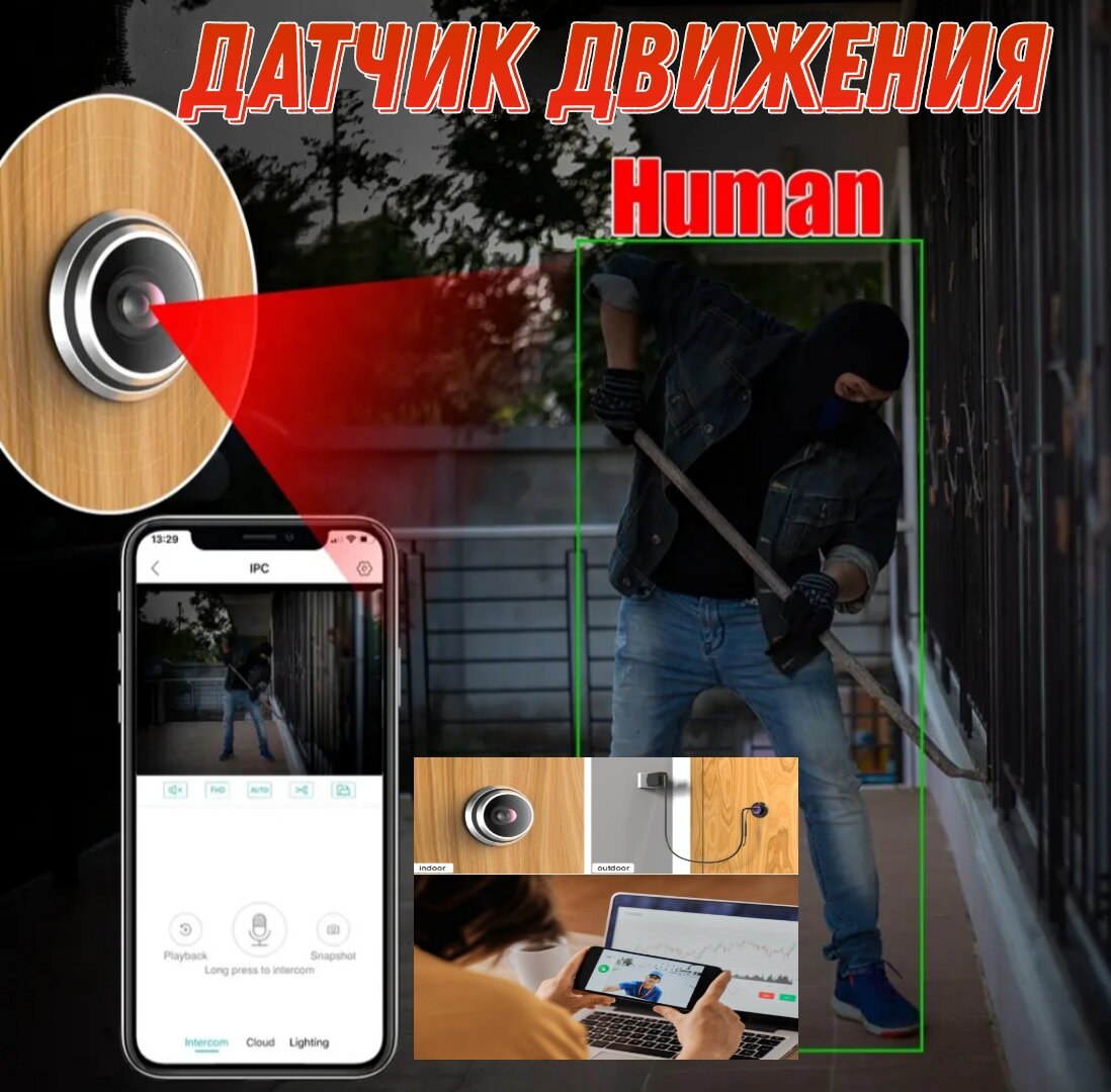 дверной видеоглазок WiFi с датчиком движения интересное: