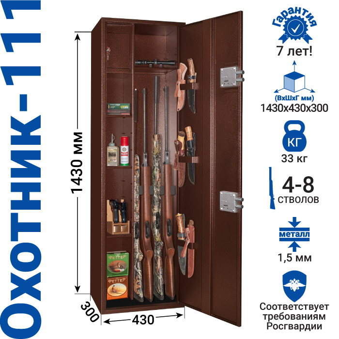 Металлический шкаф для хранения оружия Охотник-111 интересное: