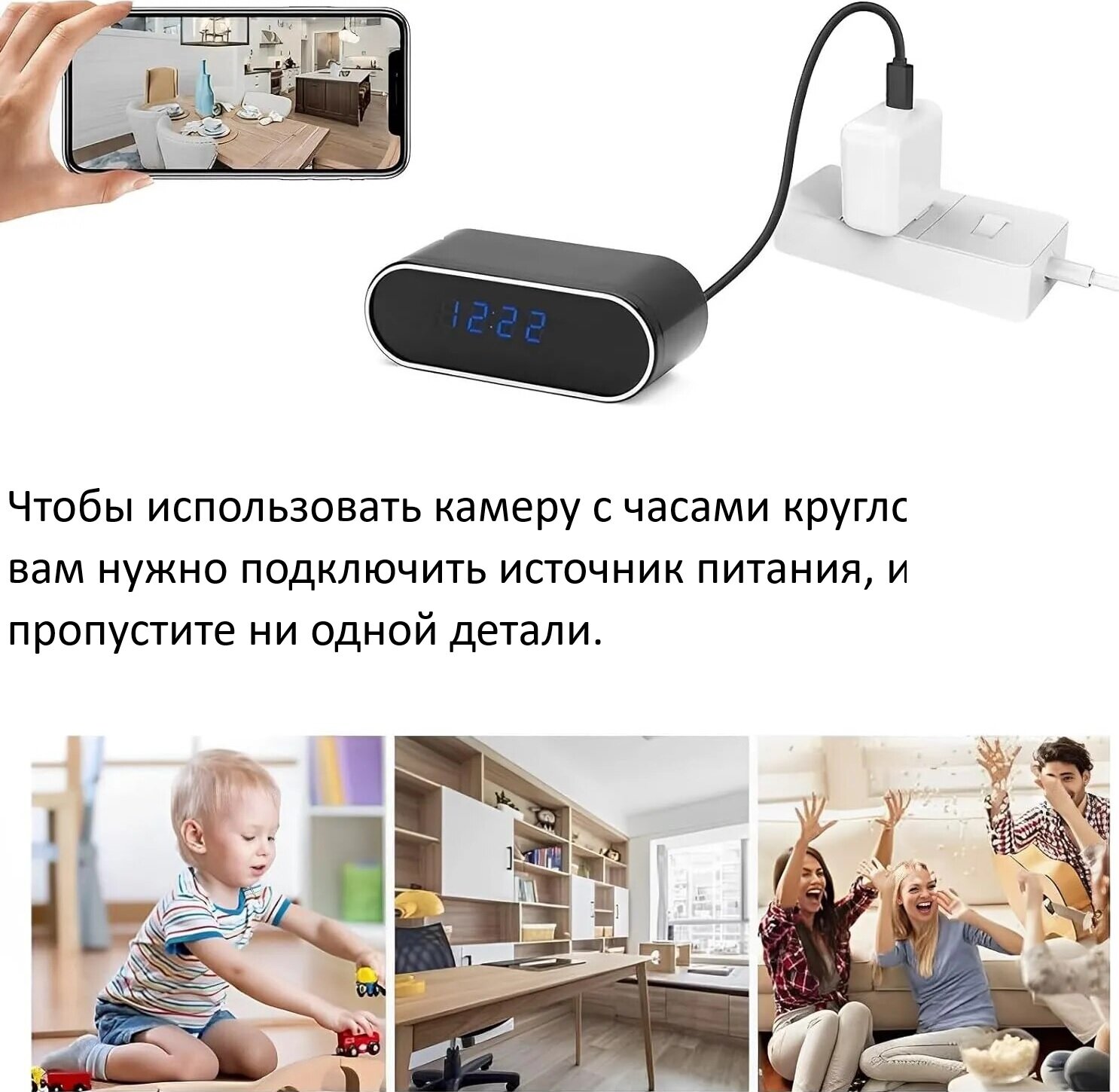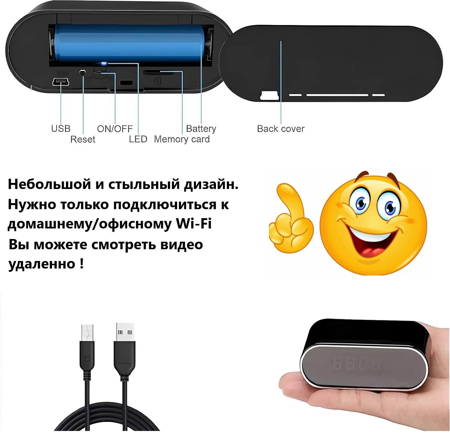 Настольные часы с Wi-Fi камерой высокого разрешения интересное: