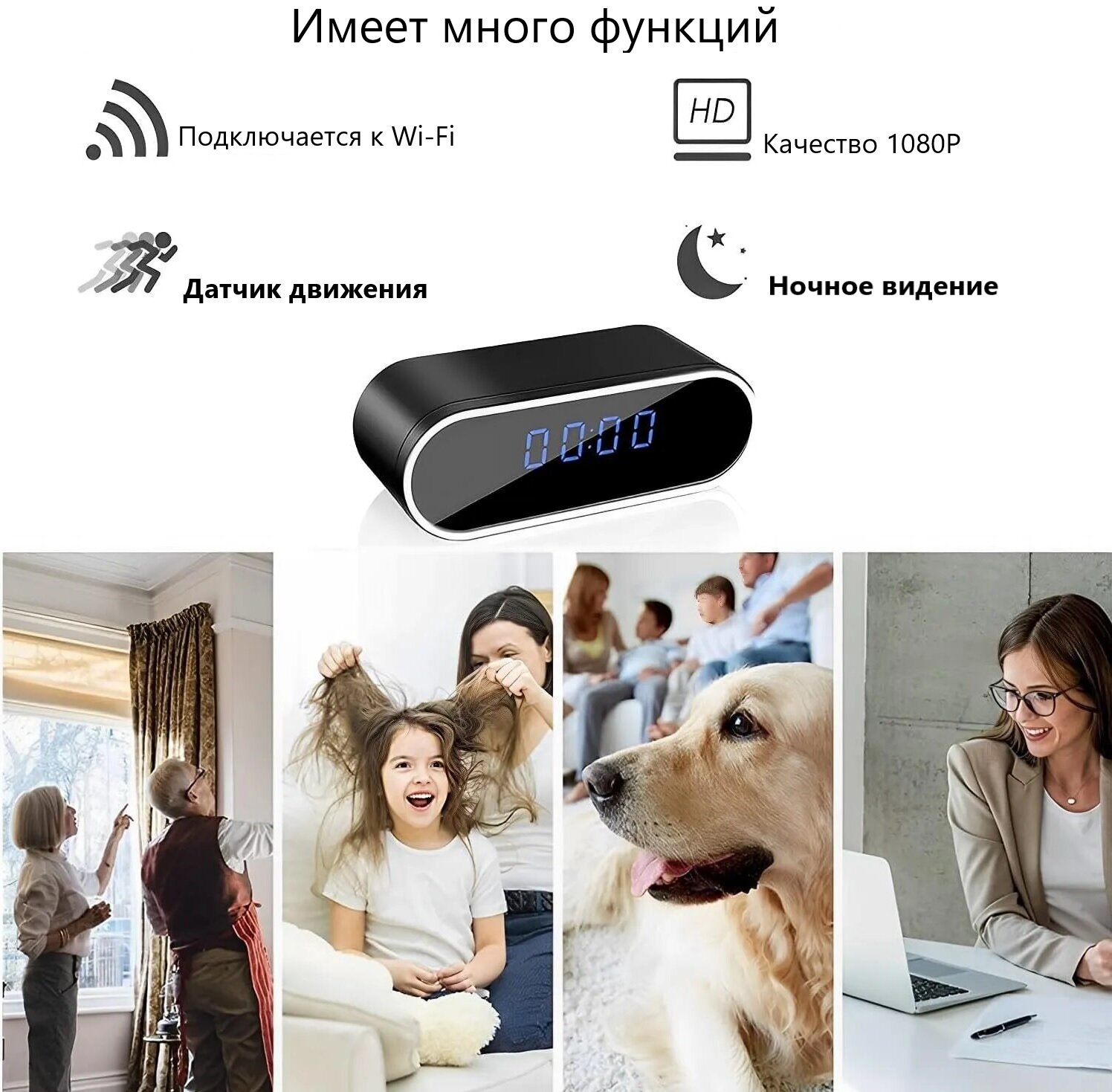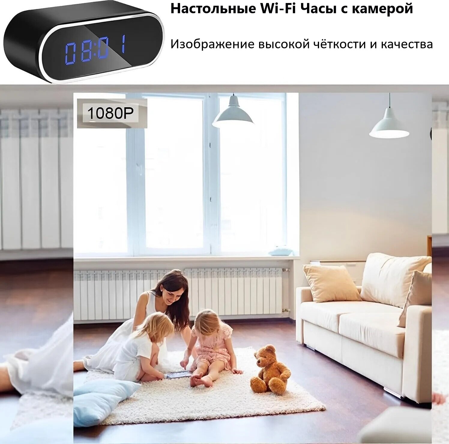 Купить Настольные часы с Wi-Fi камерой высокого разрешения