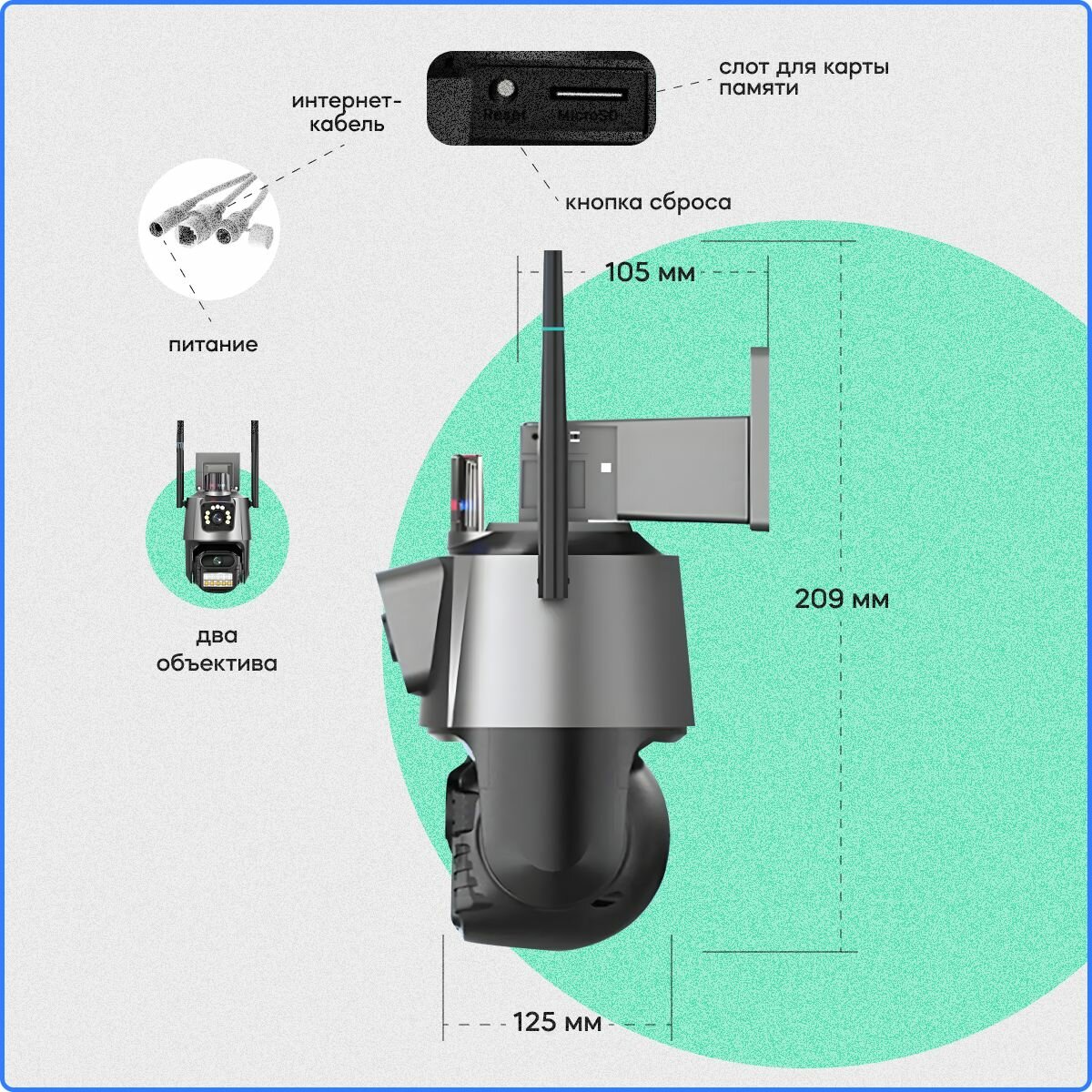Купить Видеокамера для видеонаблюдения с WI-FI LAN PTZ IP двойная Цифроника WC5-double уличная 1920х1080px 3Mp