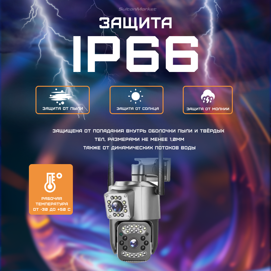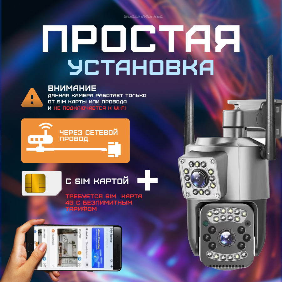 Беспроводная поворотная камера видеонаблюдения с 4G и Wi-Fi, 4 мегапикселя, IP66