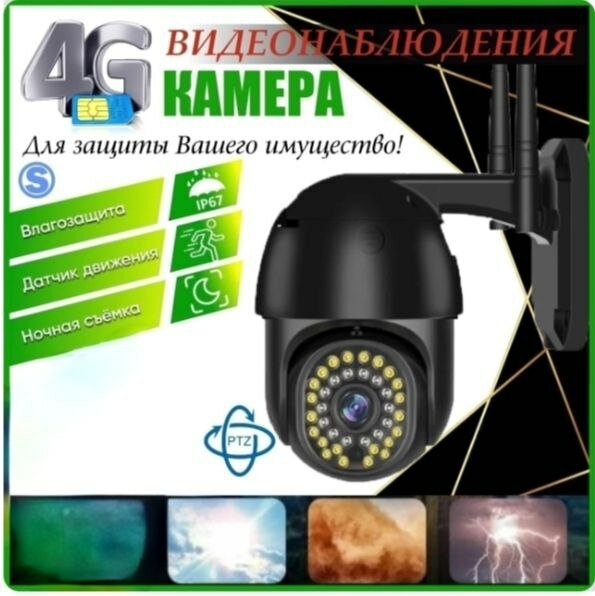 Беспроводная поворотная камера видеонаблюдения с 4G и Wi-Fi, 4 мегапикселя, IP66
