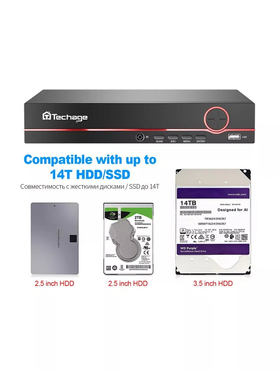 Techage 8CH POE 8-канальный видеорегистратор с двусторонней аудиосвязью