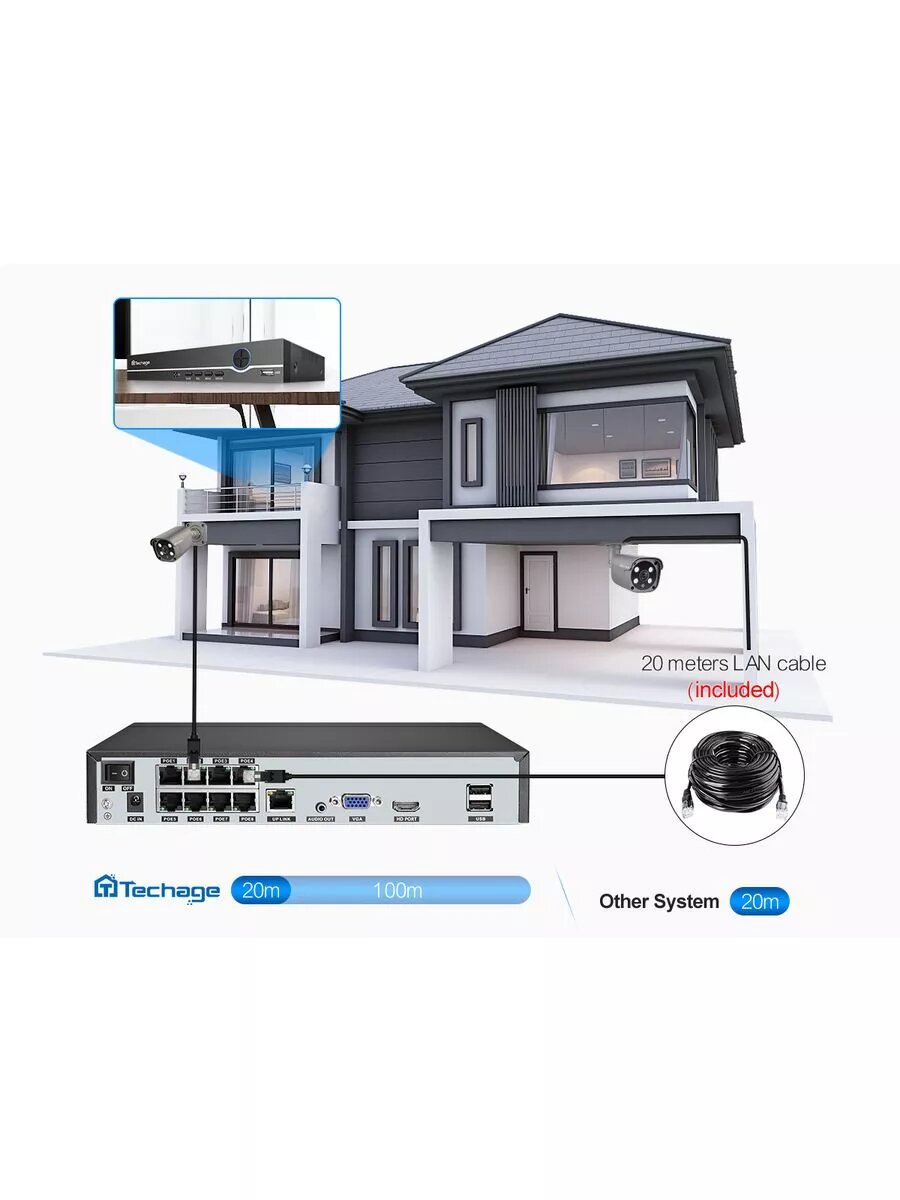 Techage 8-канальная 5-мегапиксельная система видеонаблюдения POE с двусторонним аудио