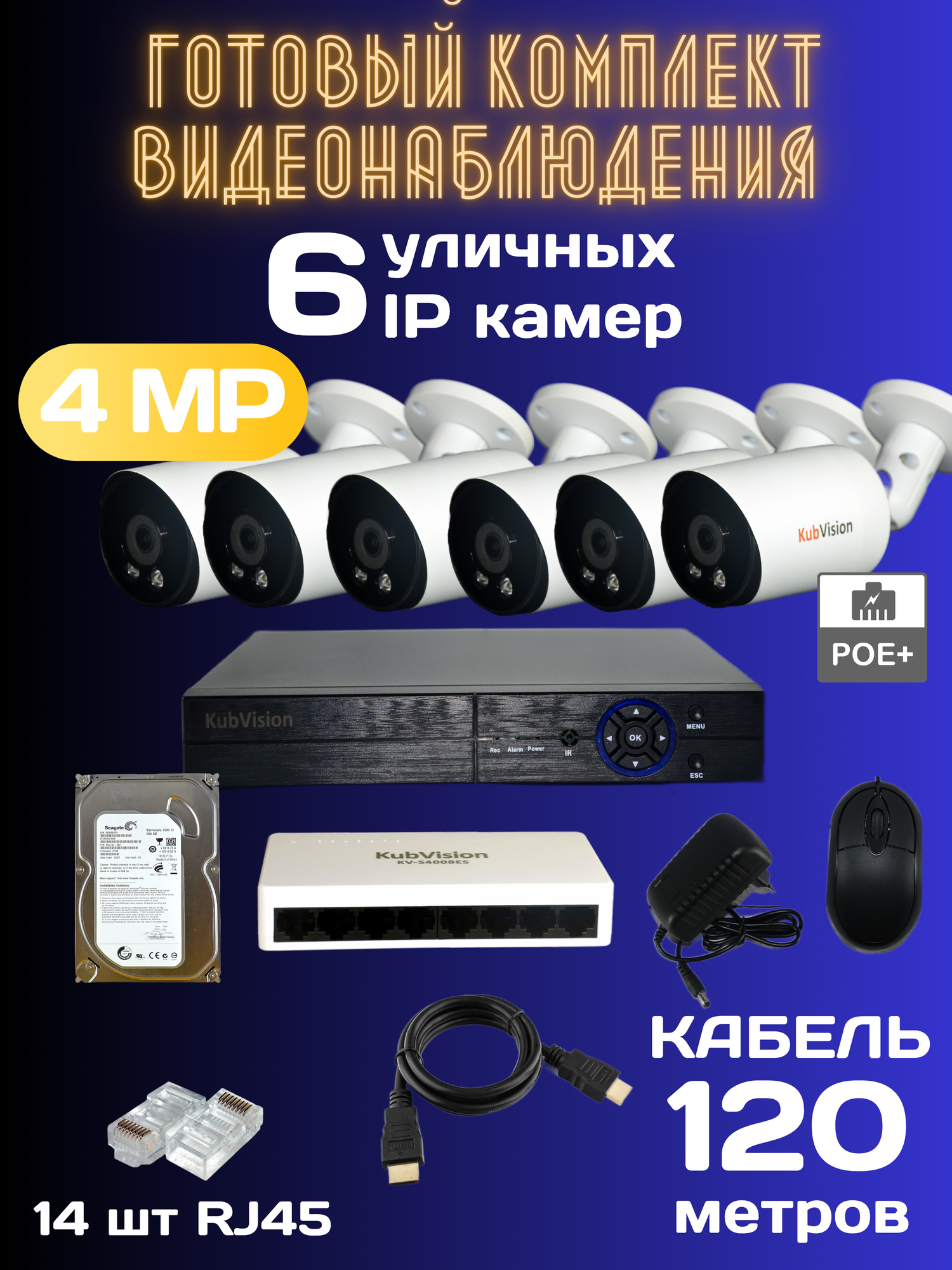 Купить Готовый комплект видеонаблюдения на 6 ip уличных камеры с poe 4 мп с жестким диском