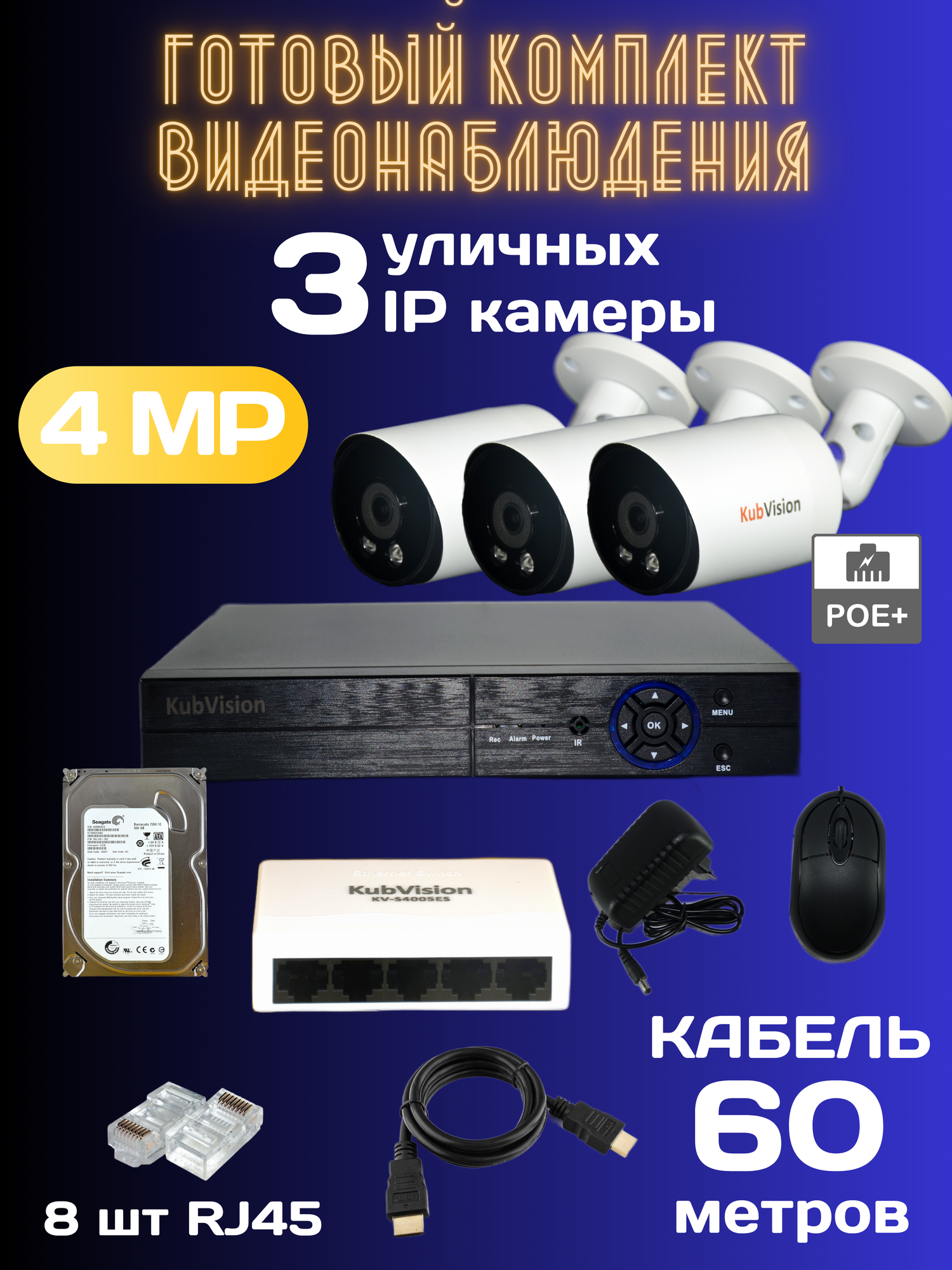 Купить Готовый комплект видеонаблюдения на 3 ip уличных камеры c poe 4 мп с жестким диском