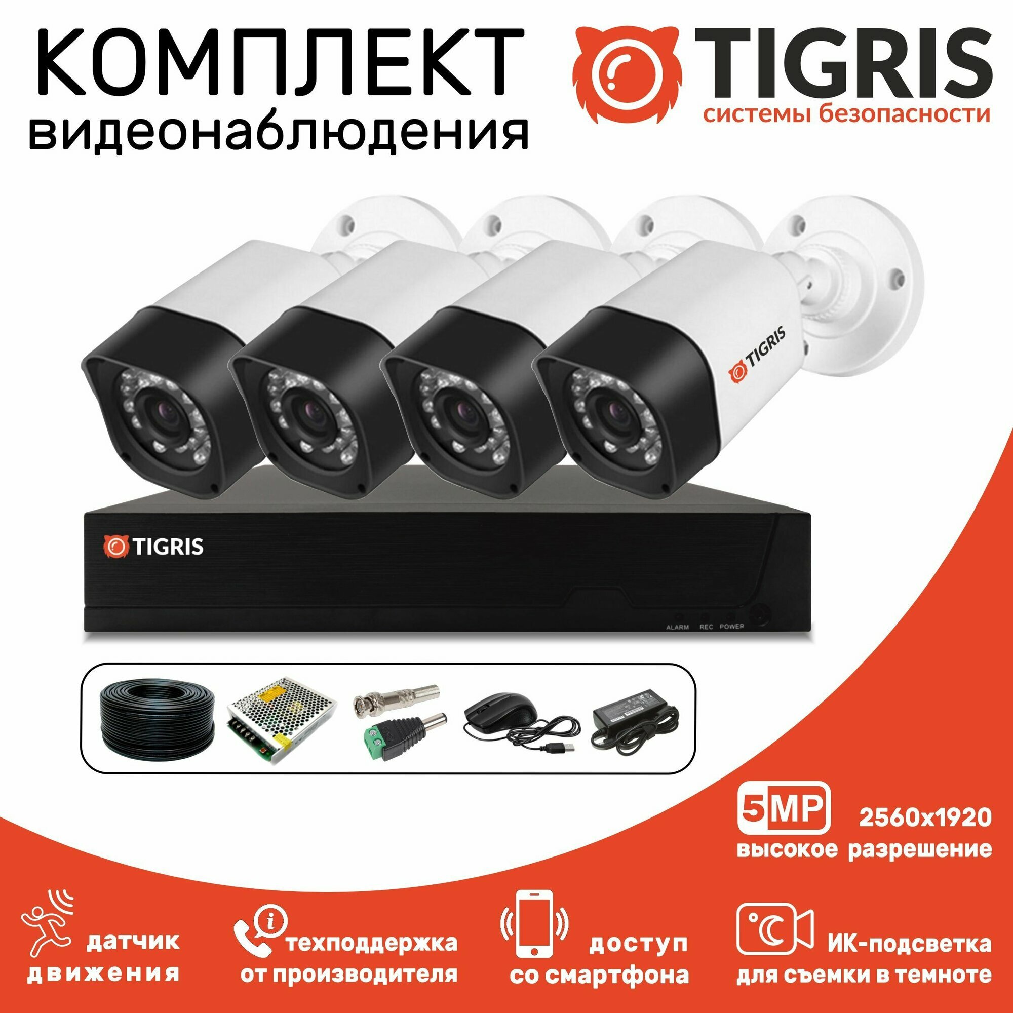 Комплект видеонаблюдения 5 мегапикселей на 4 уличные камеры интересное: