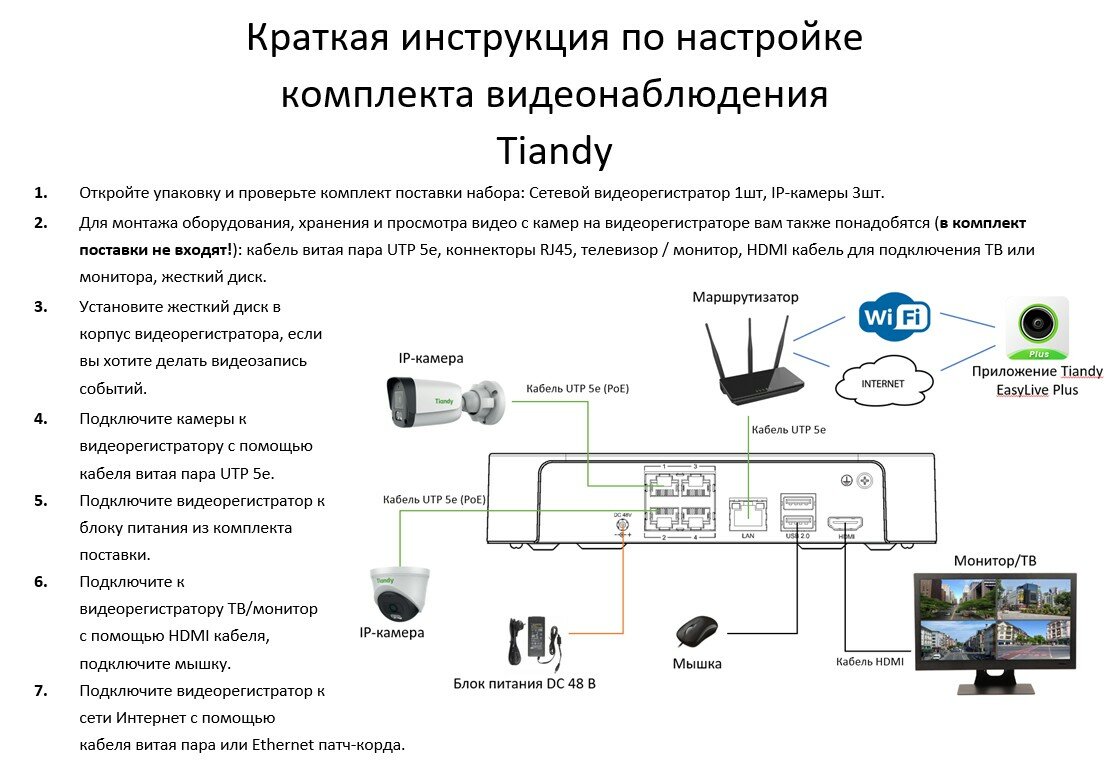 Готовый комплект IP видеонаблюдения Tiandy №5. Видеорегистратор TC-R3105 + 3 IP-камеры TC-C34QN интересное: