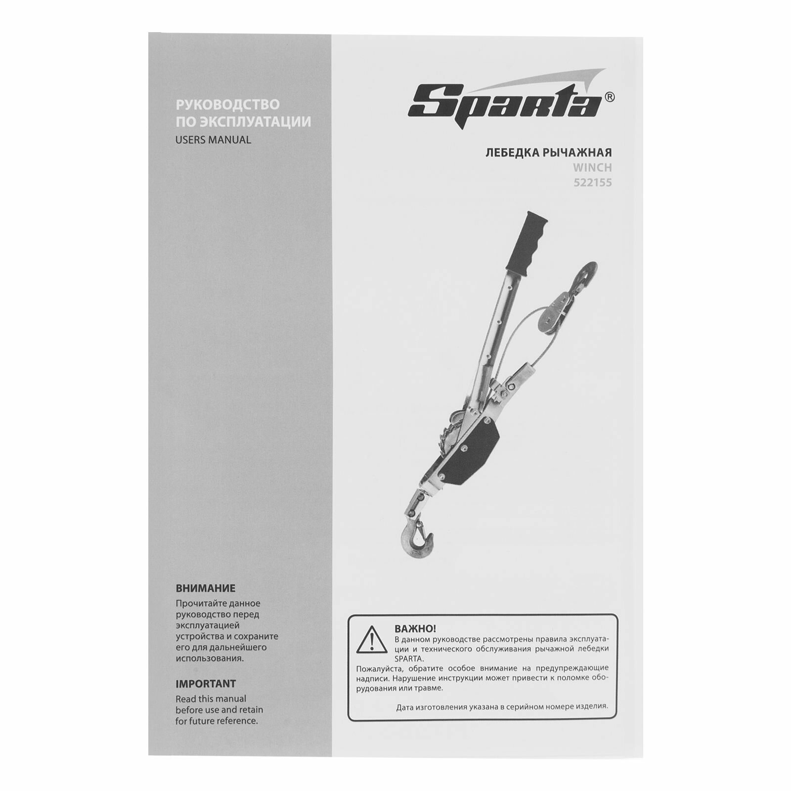 Лебедка рычажная, тяга 1.5 т, подъем 0.6 т, одинарное храповое колесо Sparta интересное: