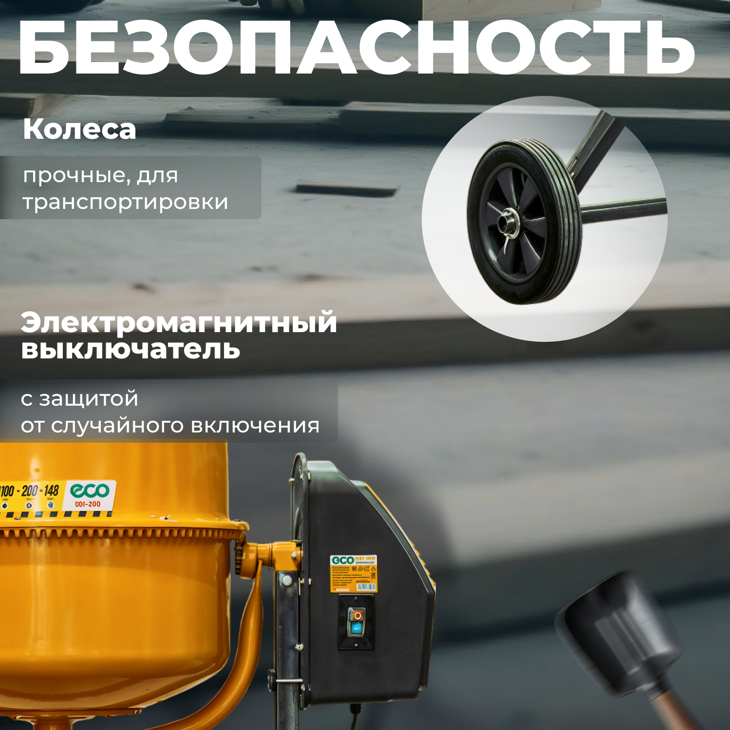 СохранитьБетономешалка электрическая ECO CM-200 (объём 200/148 л, 1100 Вт, 230 В, вес 54 кг) (EC3410-7) интересное: