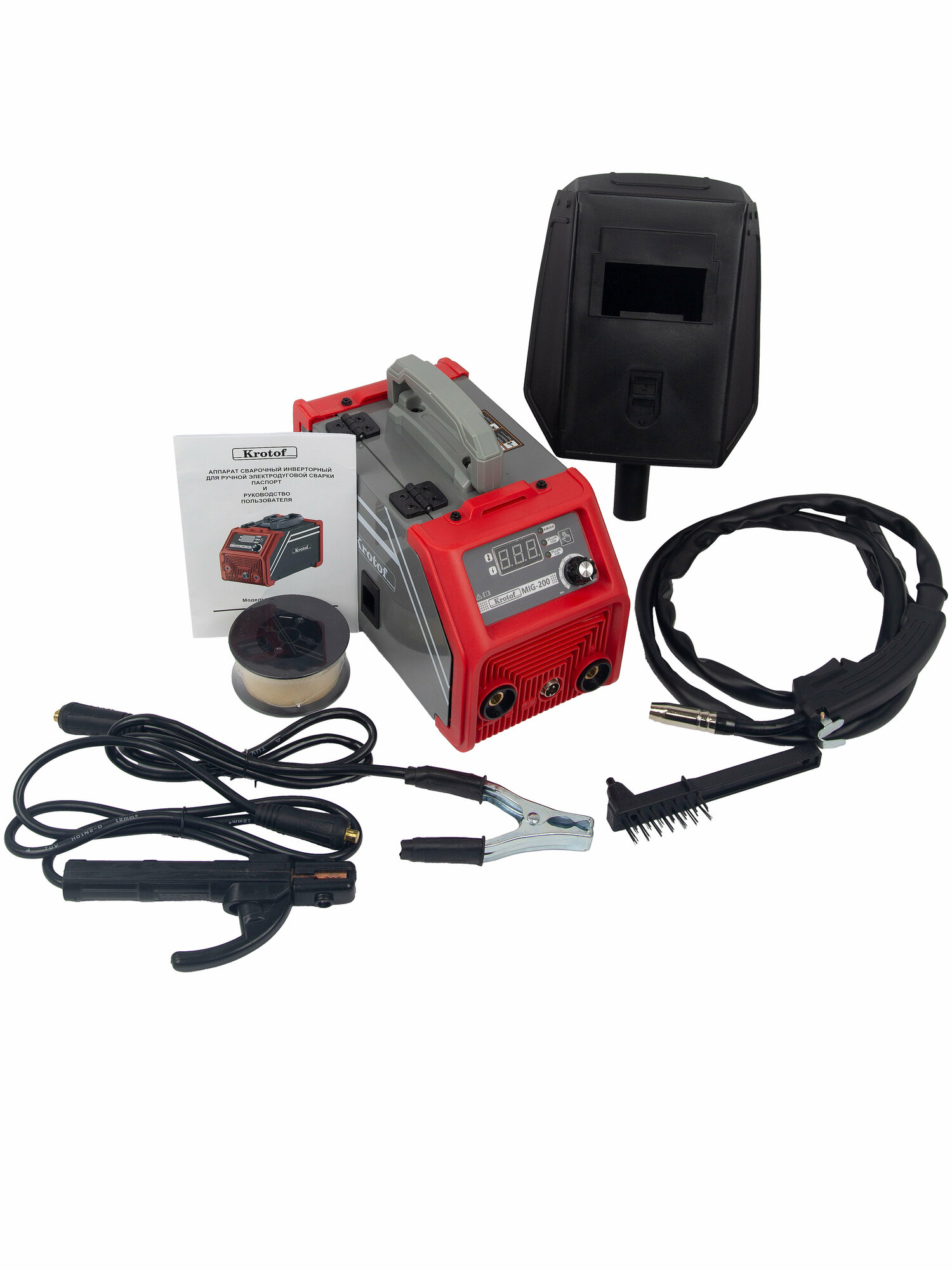Сварочный аппарат полуавтомат Krotof MIG-200 новый корпус, проволока 1 мм катушка, защитный щиток В комплекте интересное: