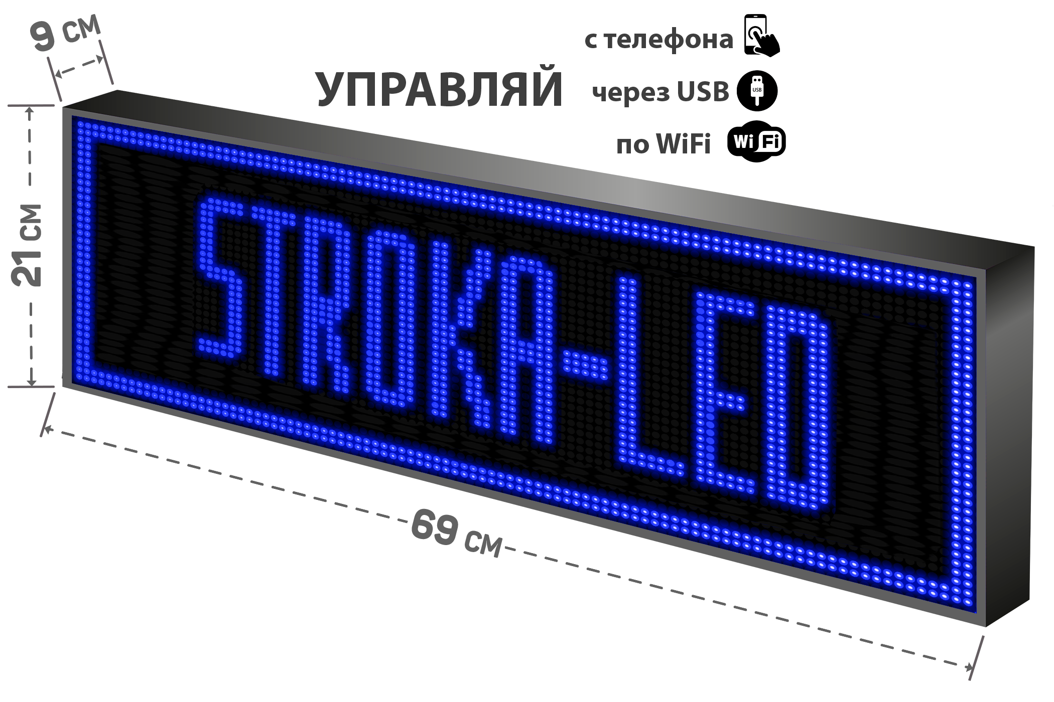 Купить Бегущая строка/ Led /рекламная вывеска/ панель/69х21см /управление с телефона