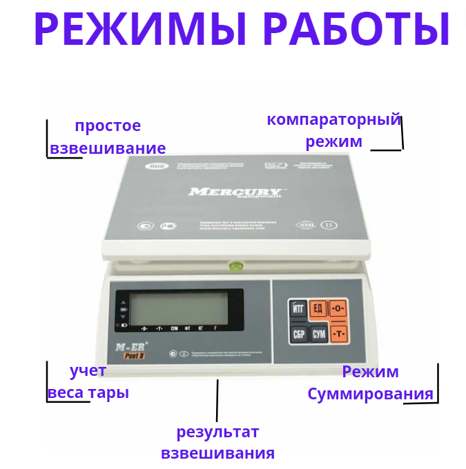 | Функции | взвешивание / вычитание массы тары / компараторный режим / суммирование массы / счетный режим |
