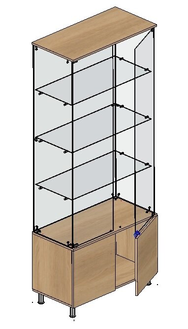 Витрина стеклянная торговая для музея с запасником 220 х 45 х 45 см.