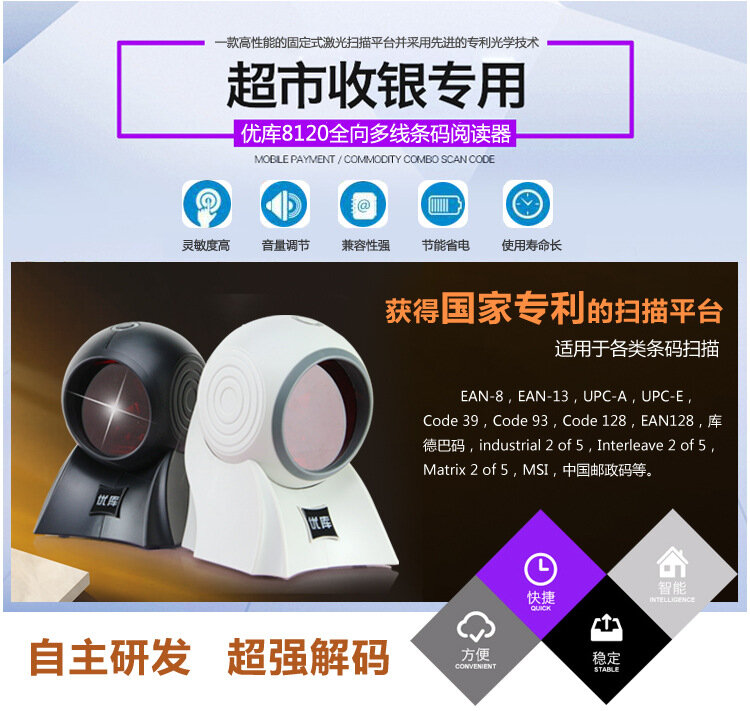 Платформа лазерного сканирования Youku 8120, для кассира супермаркета, книжного магазина, сканер штрих-кодов интересное: