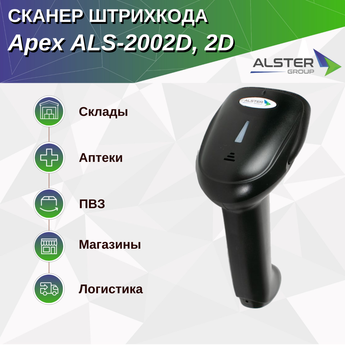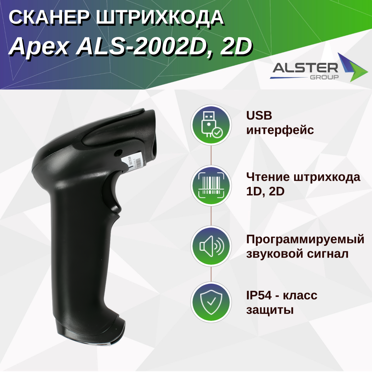 2D сканер штрихкода Apex ALS-2002D, USB интересное: