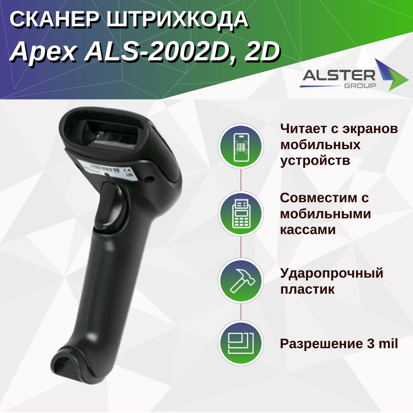 Купить 2D сканер штрихкода Apex ALS-2002D, USB