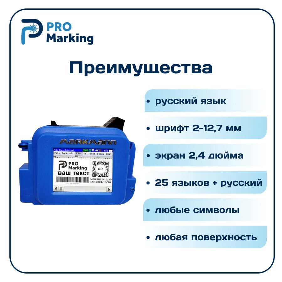 Маркиратор каплеструйны MarkMann UltraJet 380 (синий), датер интересное: