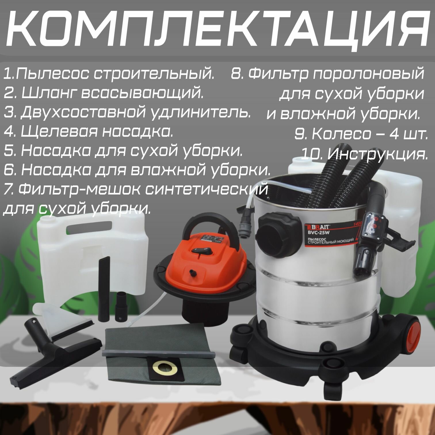 СохранитьПылесос строительный Brait BVC-25W, 230 В, 50 Гц, 1400 Вт, пылесборник 25 л, шланг 2 м интересное: