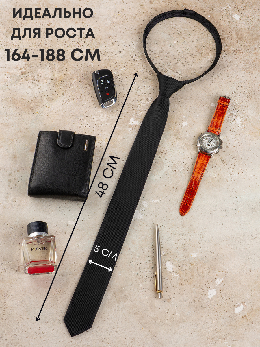 Галстук Valderice мужской женский черный узкий классический со сформированным узлом на застежке молнии интересное: