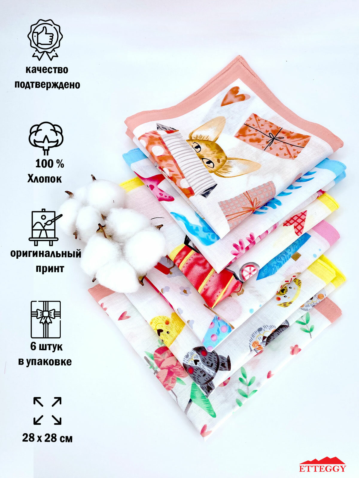 Носовой платок Etteggy, 6 шт., розовый