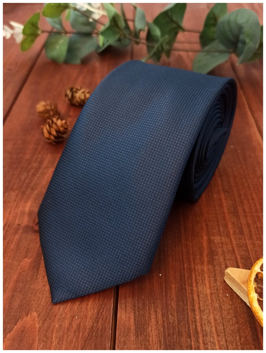 Галстук мужской узкий темно-синий однотонный с клеточной текстурой интересное: