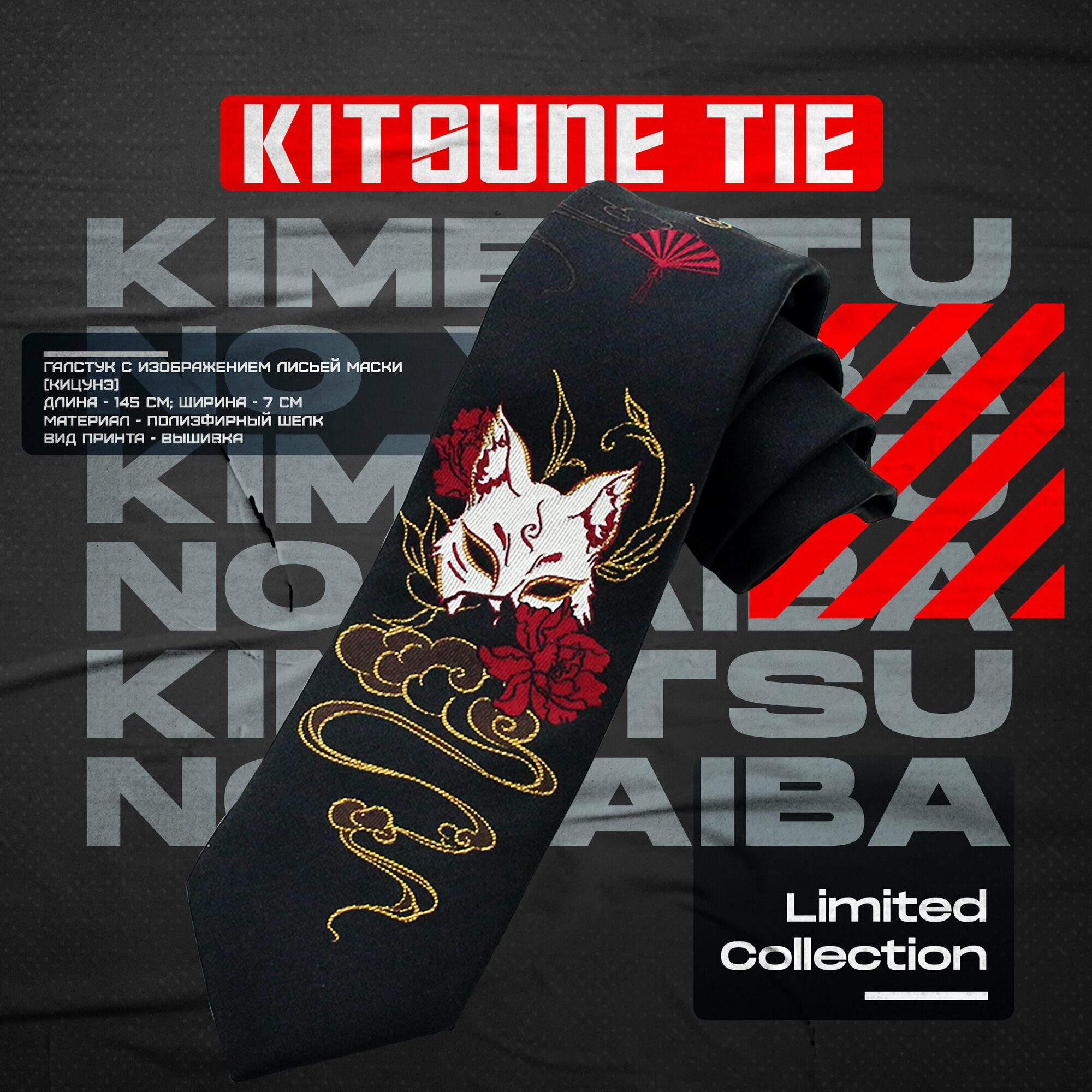 Галстук с изображением Лисьей Маски (Кицунэ) 145 см / Атрибутика для аниме косплея интересное:
