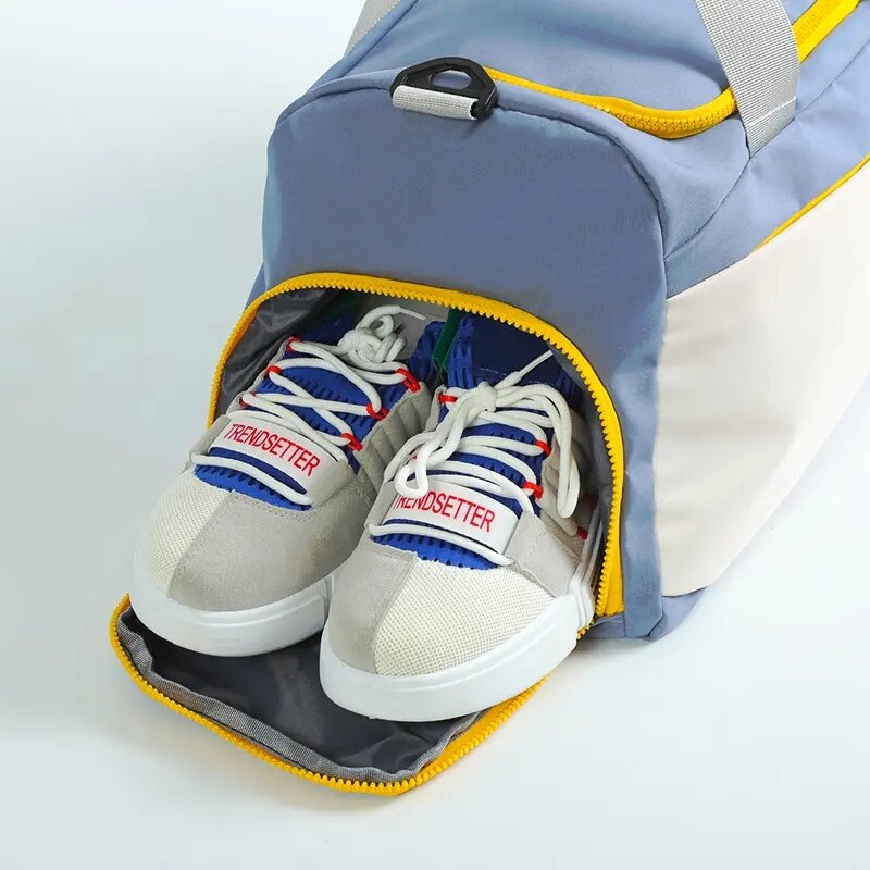 Сумка спортивная, объем 31 л, 24*27*50 см, ручная кладь, отделение для обуви, отделение для мокрых вещей, плечевой ремень, голубая