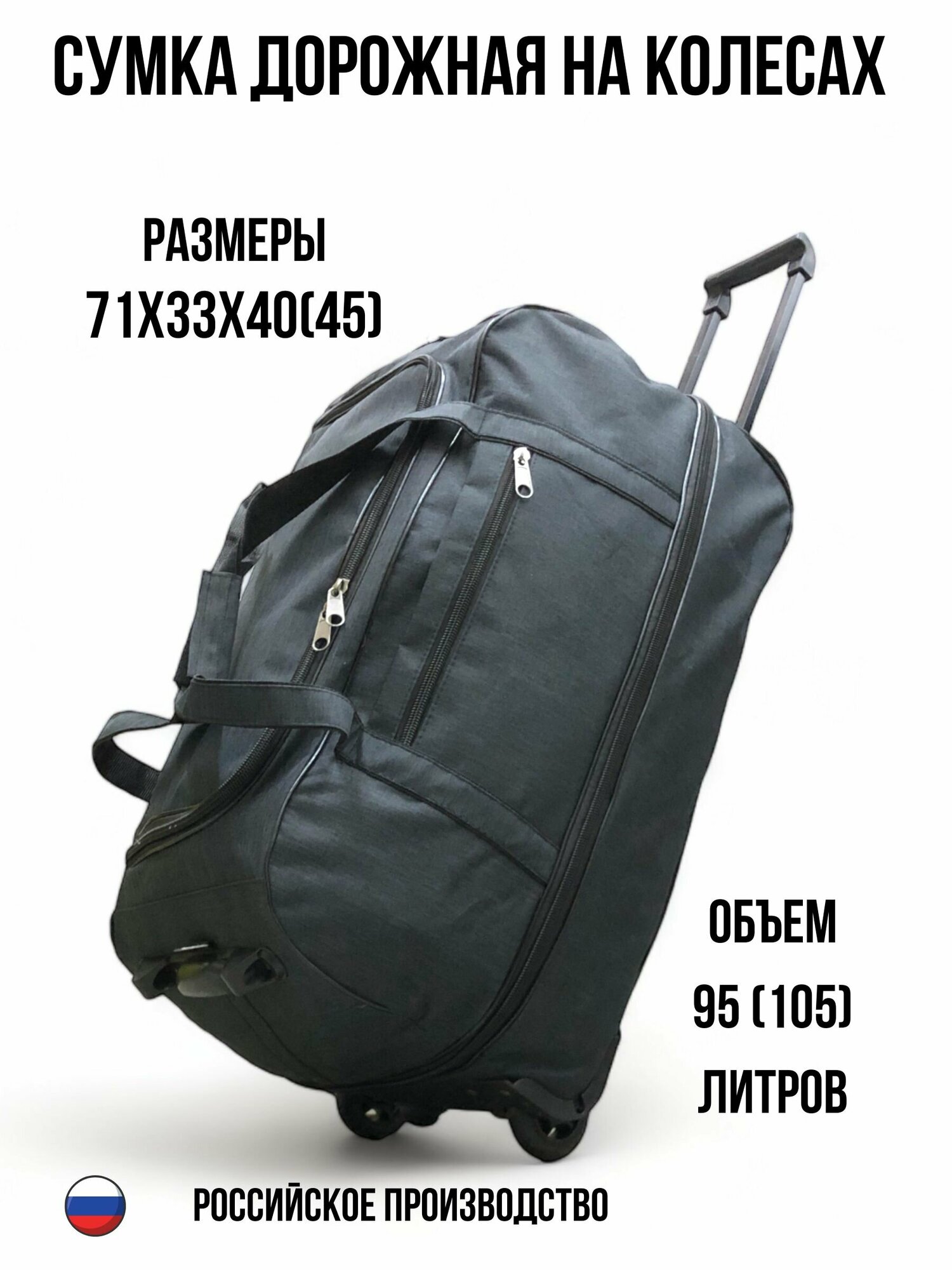 Сумка дорожная на колесах с выдвижной ручкой 105 литров, черная интересное: