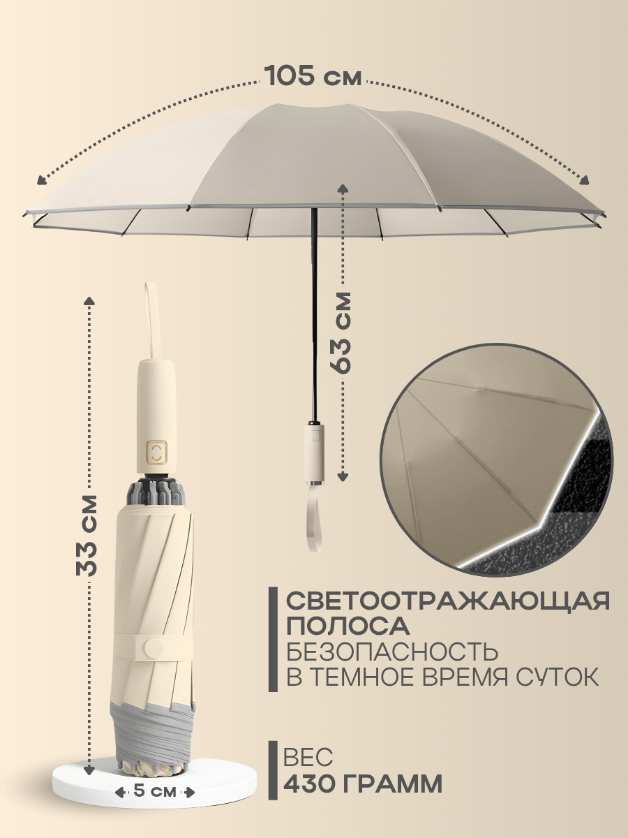 СохранитьЗонт-автомат "Антиветер" с обратным сложением, бежевый интересное: