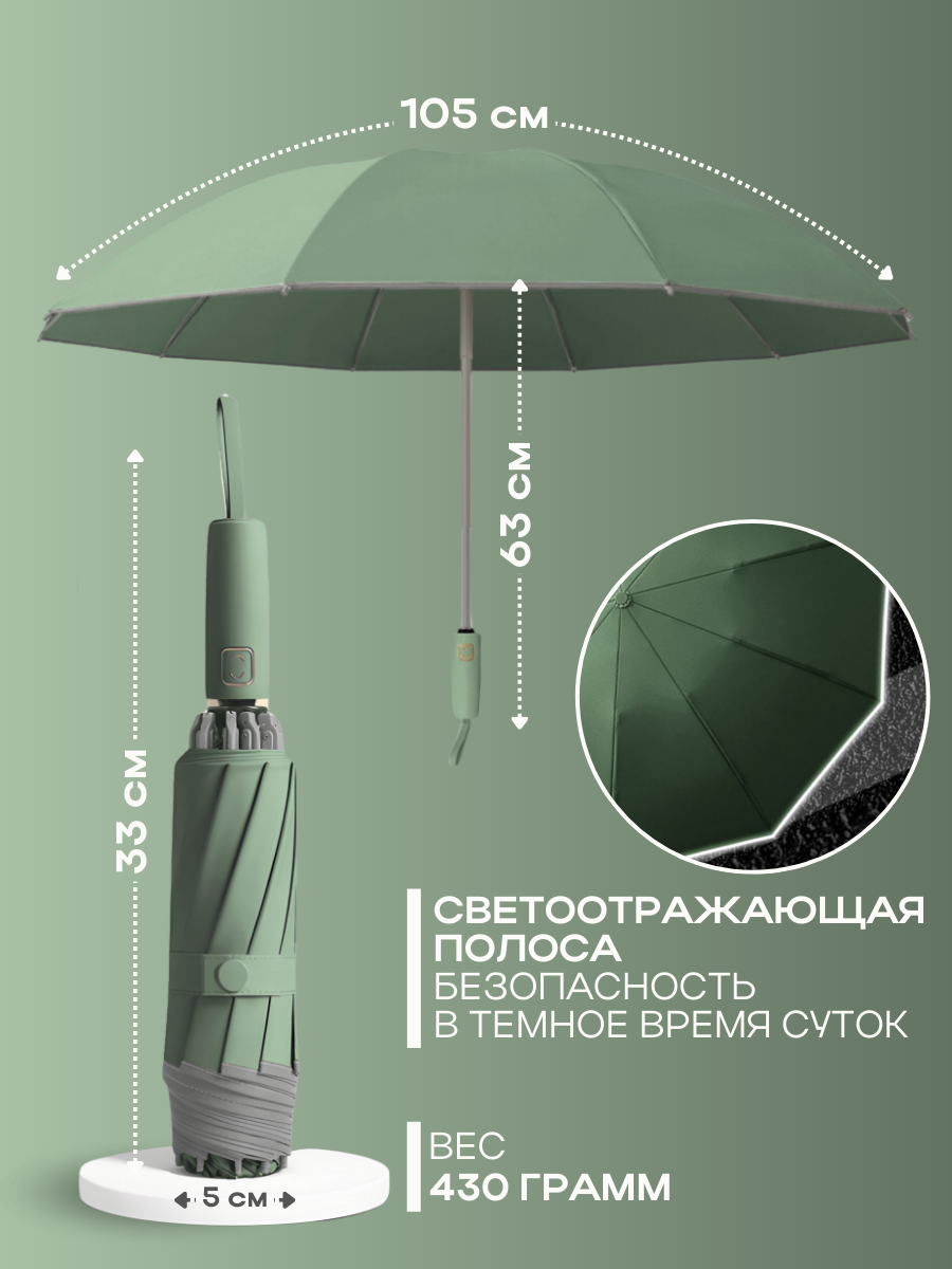 СохранитьЗонт-автомат "Антиветер" с обратным сложением, зеленый интересное: